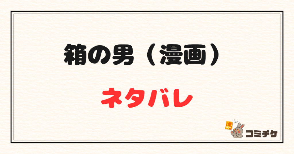 こんにちは。コミチケ、運営者の「うさぎ」です。 今回は、箱の男の漫画のネタバレ記事になります。 箱の男の漫画ネタバレを探しているあなたは、あらすじだけでなく、箱の中の男の正体、父親の正体、母親の正体、最終回の結末、さっちゃんの意味、伏線回... -