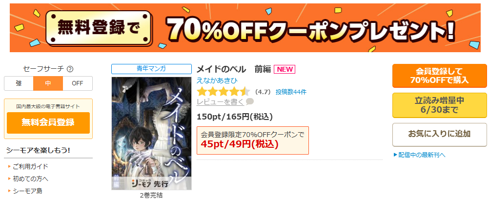 メイドのベルは前編と後編で通常330円ですが、シーモアならたったの98円で読めます。